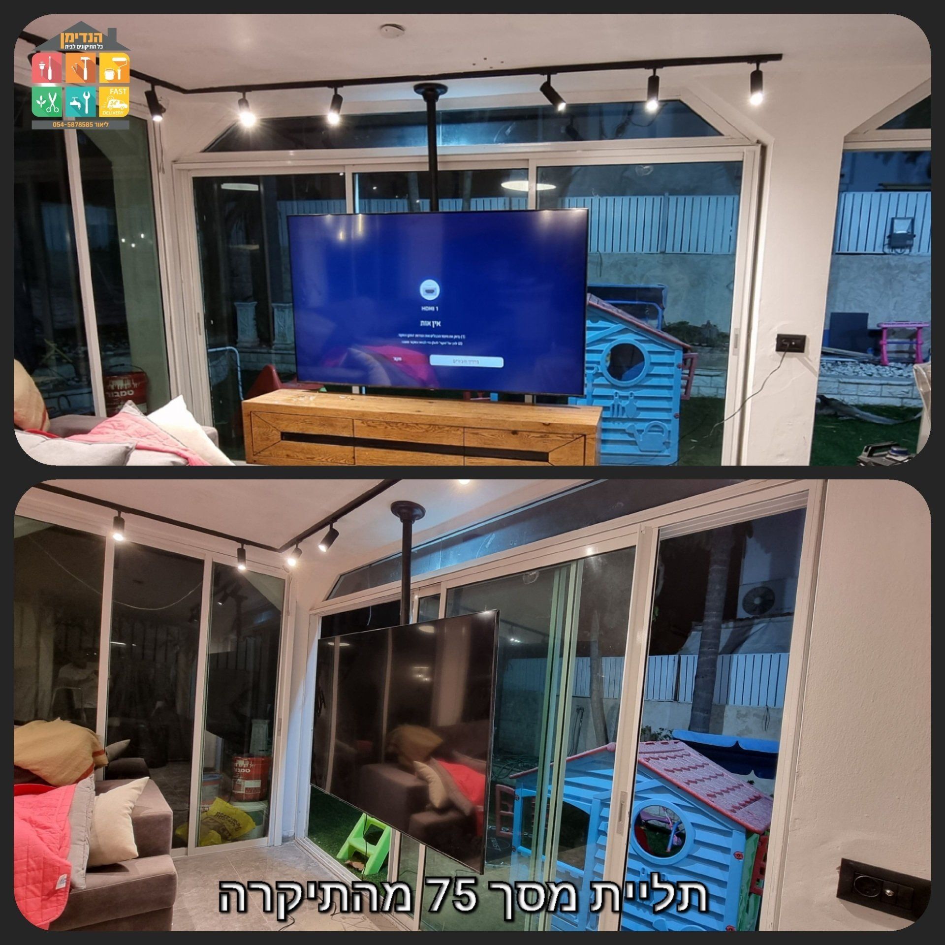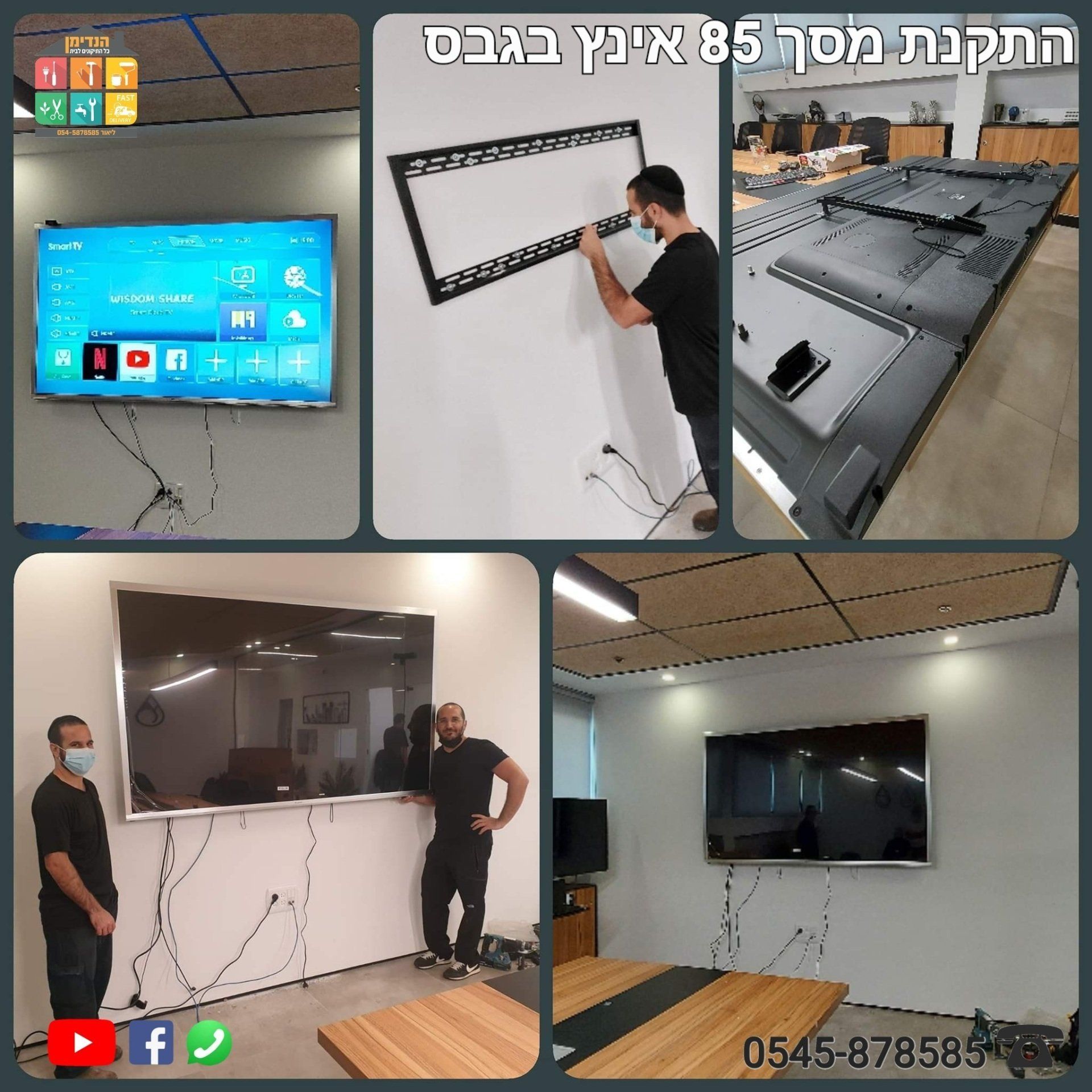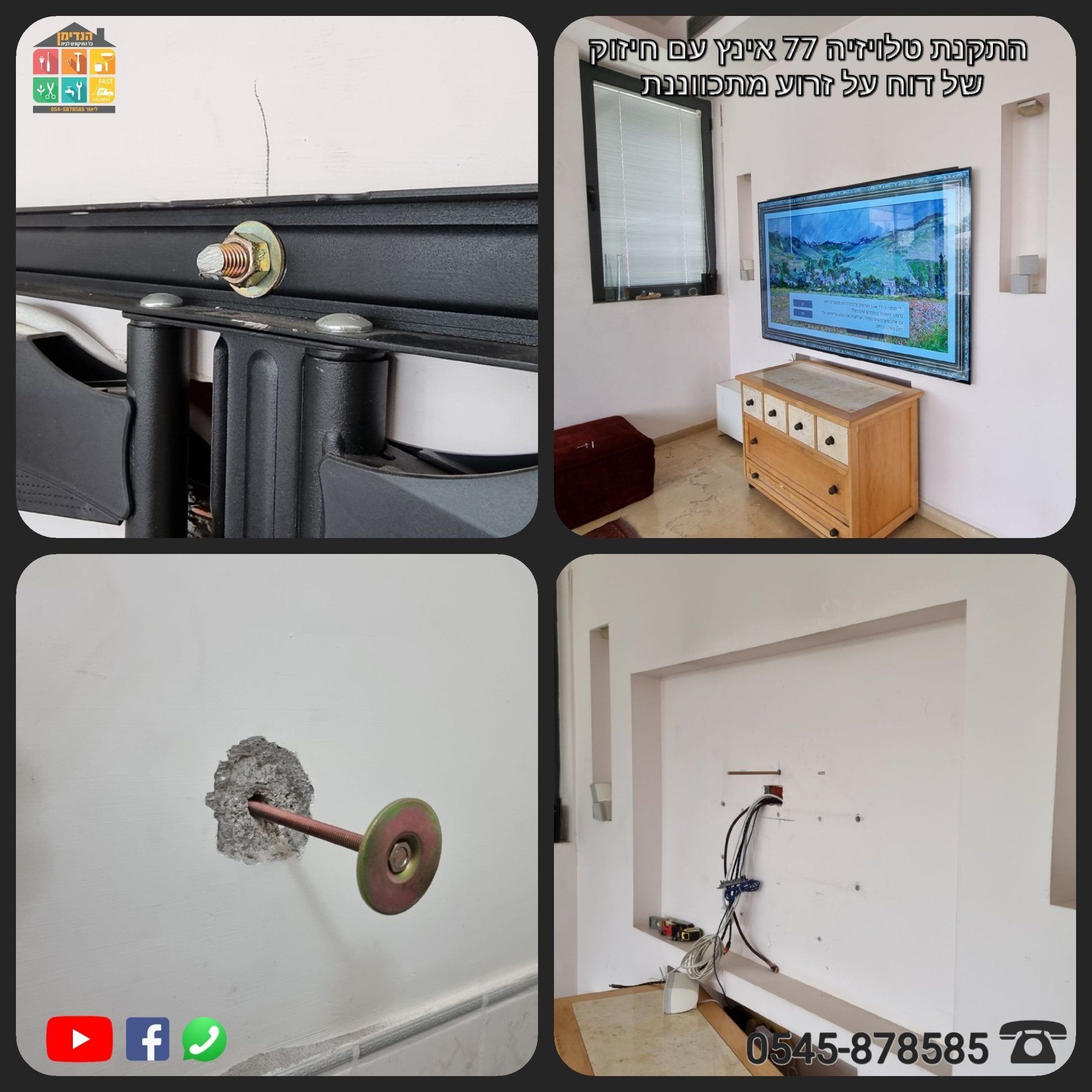 התקנות מסכים על גבס עם חיזוקים מיוחדים על זרועות מתכווננות למסכים גדולים ועוד!